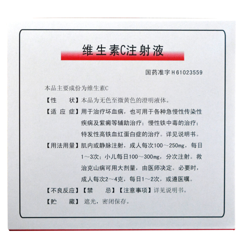 1、防治坏血病、各种急慢性传染病及紫癜等辅助治疗.慢性铁中毒.特发性高铁血红蛋白血症。