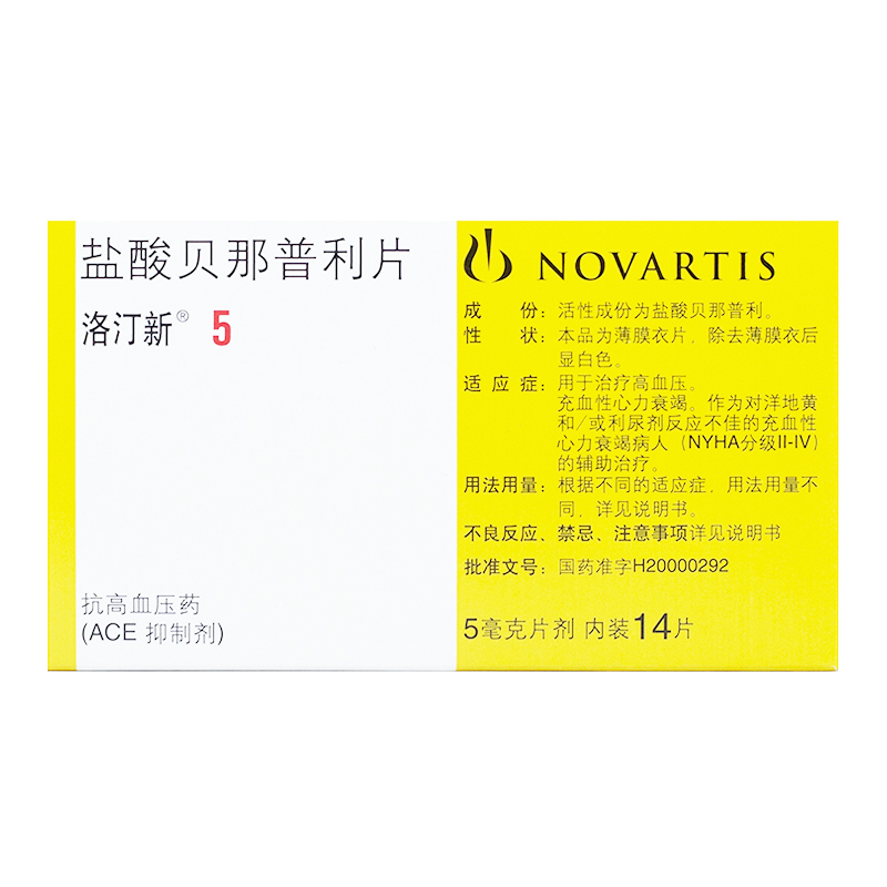 盐酸贝那普利片(洛汀新)(薄膜衣) 5mg*14s 北京诺华制药有限公司