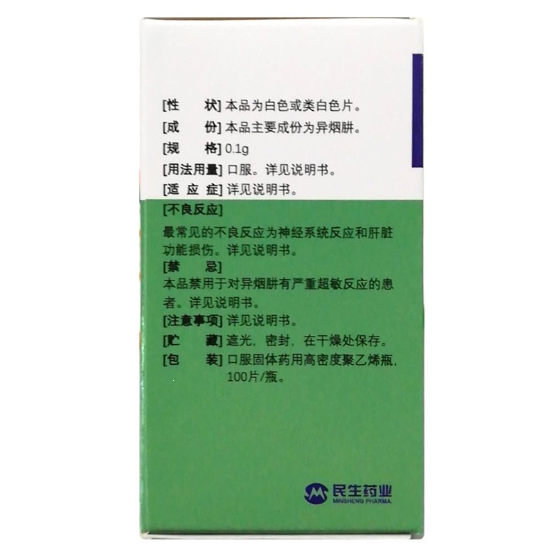 异烟肼片 0.1g*100s 杭州民生药业有限公司