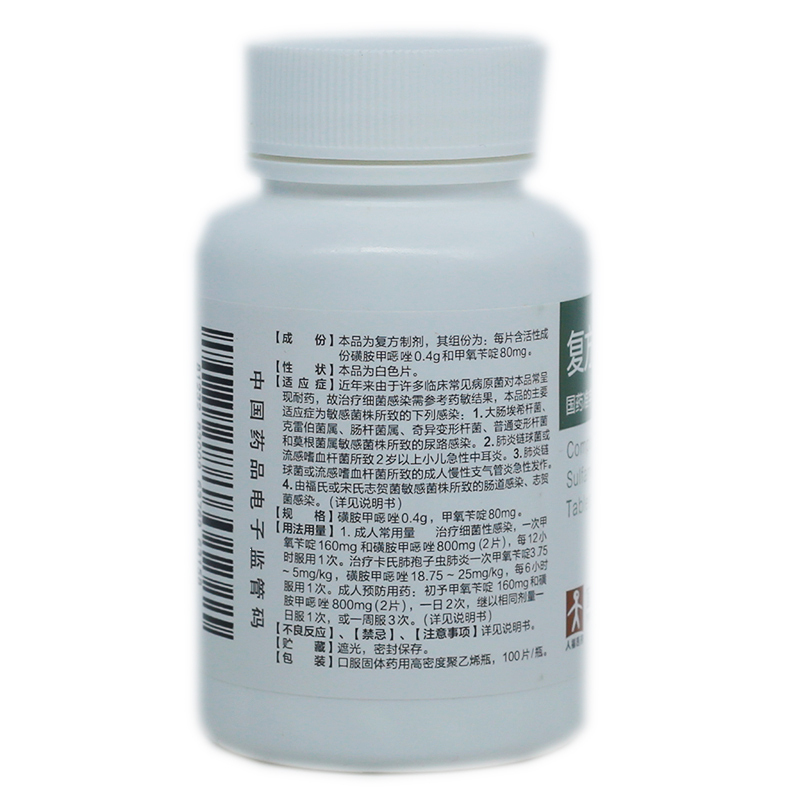 复方磺胺甲噁唑片(复方新诺明片) 0.4g*100s(10) 宜昌人福药业有限责任公司