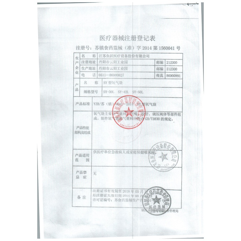 SY型氧气袋 SY-42L 江苏鱼跃医疗设备股份有限公司