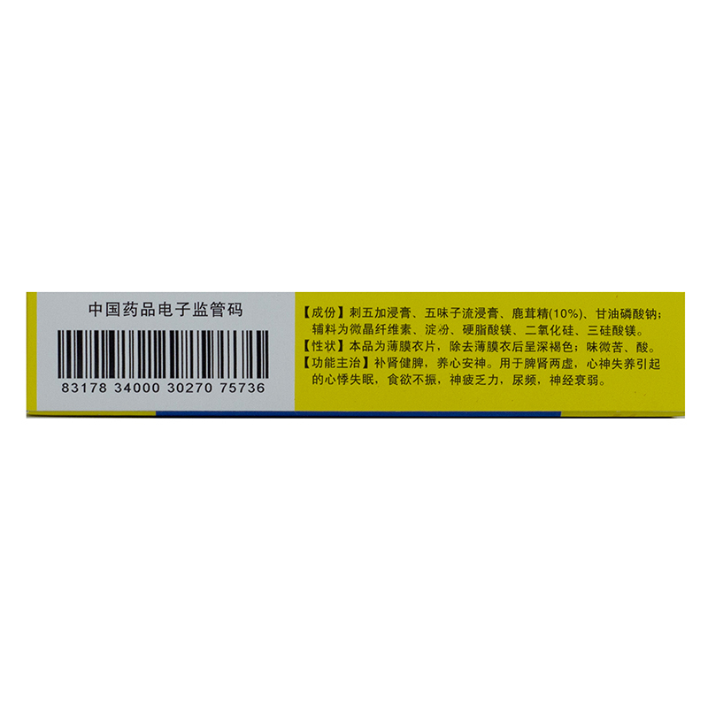 补肾健脾,养心安神。用于脾肾两虚,心神失养引起的心悸失眠,食欲不振,神疲乏力,尿频,神经衰弱。