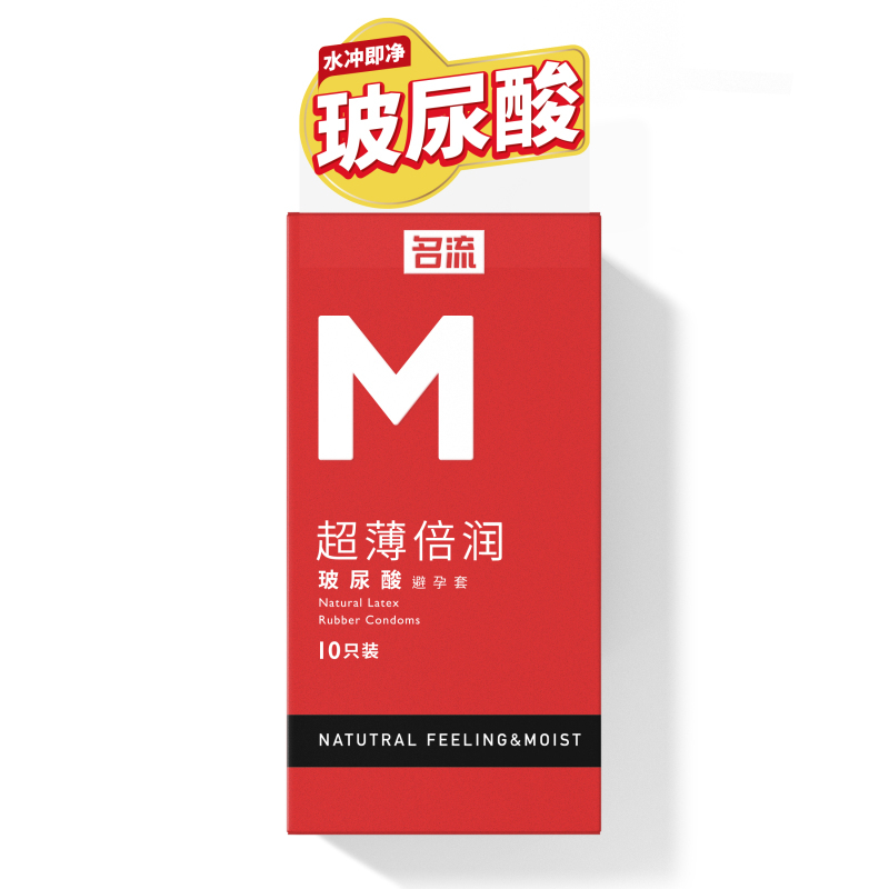 天然胶乳橡胶避孕套(M超薄倍润玻尿酸避孕套红色) 10只 上海名流卫生用品股份有限公司