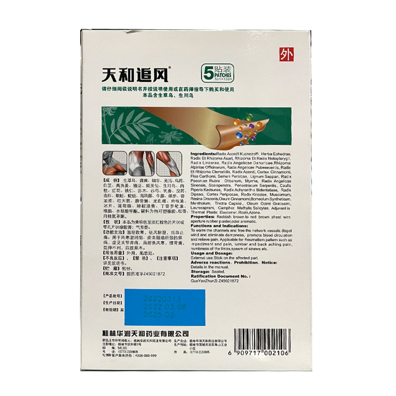 天和追风膏 8cm*13cm*5贴 桂林华润天和药业有限公司