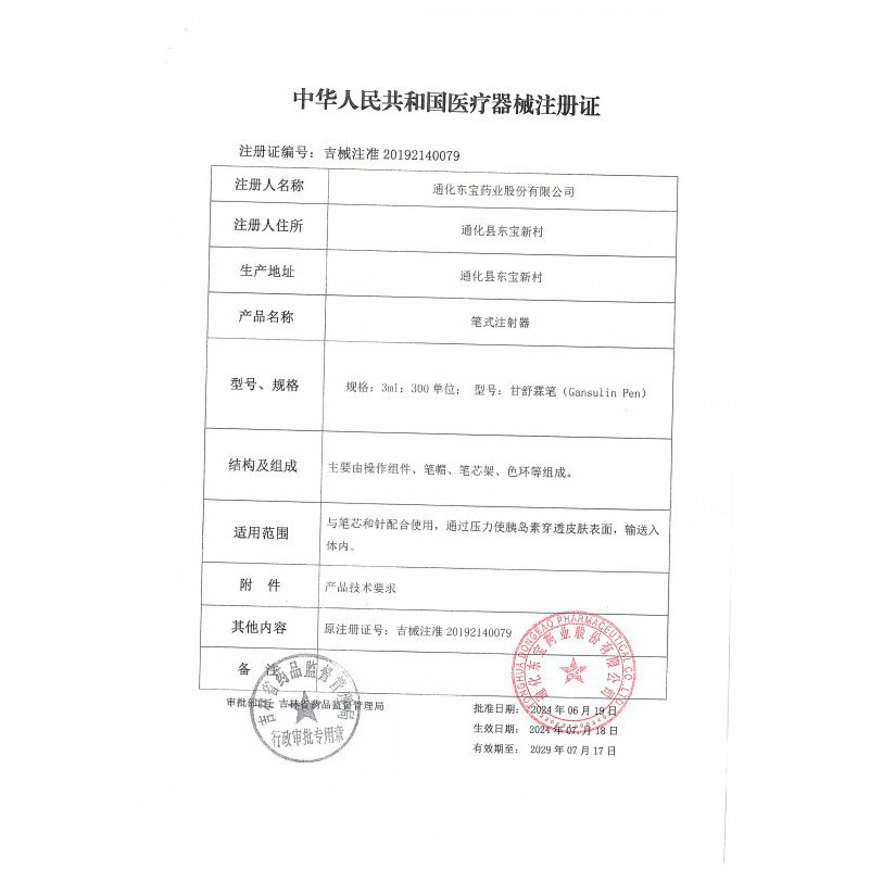 笔式注射器(甘舒霖笔) 300单位(3ml) 通化东宝药业股份有限公司