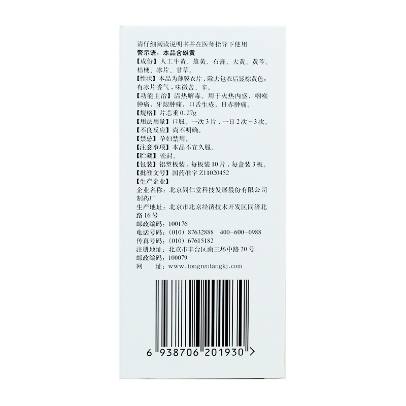 牛黄解毒片(薄膜衣) 0.27g*10s*3板(8) 北京同仁堂科技发展股份有限公司制药厂