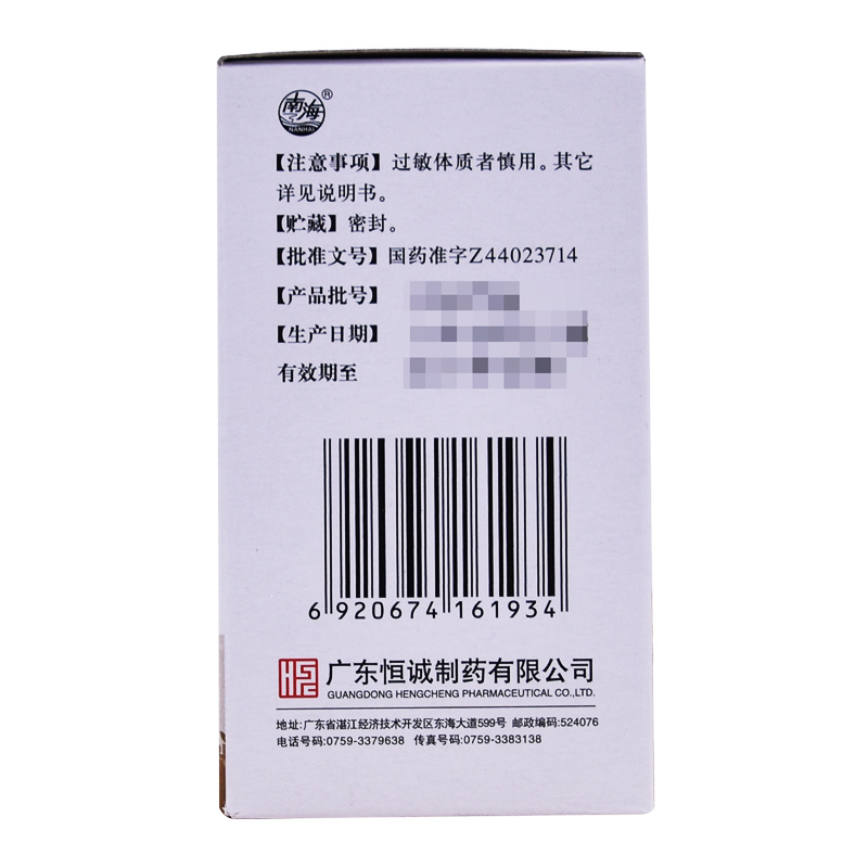 产  地: 广东恒诚制药股份有限公司(原广东恒诚制药有限公司)