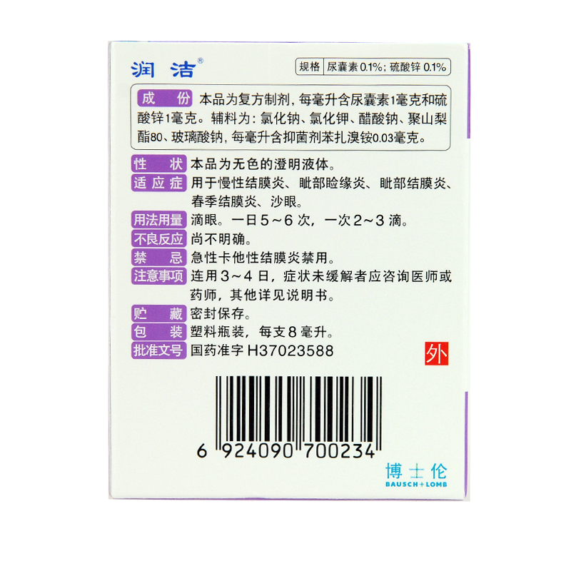 硫酸锌尿囊素滴眼液(紫润洁) 8ml 山东博士伦福瑞达制药有限公司