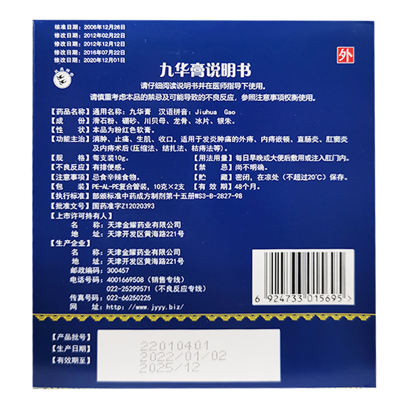 九华膏 10g*2支 天津金耀药业有限公司