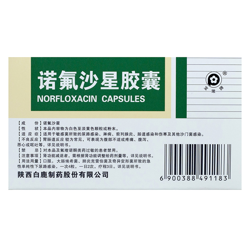 诺氟沙星胶囊 0.1g*20s 陕西白鹿制药股份有限公司