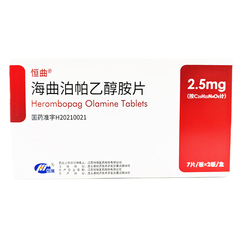 海曲泊帕乙醇胺片 2.5mg*14s 江苏恒瑞医药股份有限公司