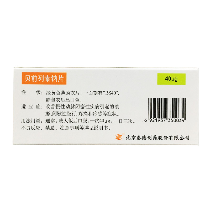 贝前列素钠片 40ug*10片 北京泰德制药股份有限公司