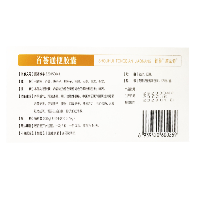 首荟通便胶囊 0.35g*12s 鲁南厚普制药有限公司