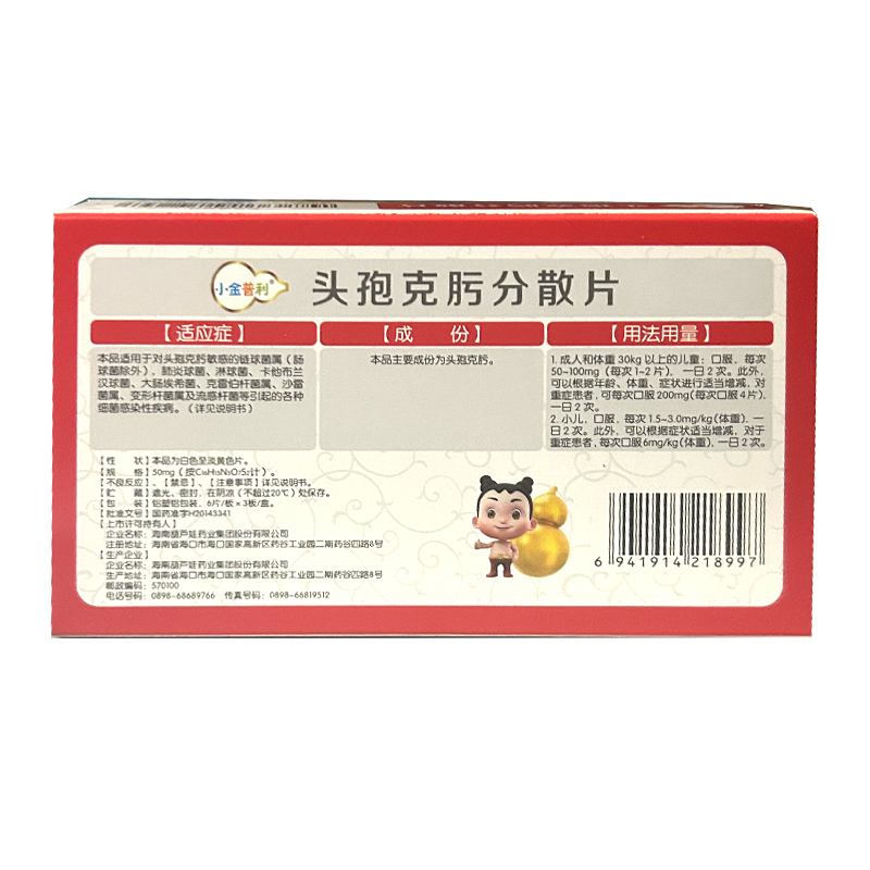 头孢克肟分散片 50mg*6s*3板 海南葫芦娃药业集团股份有限公司
