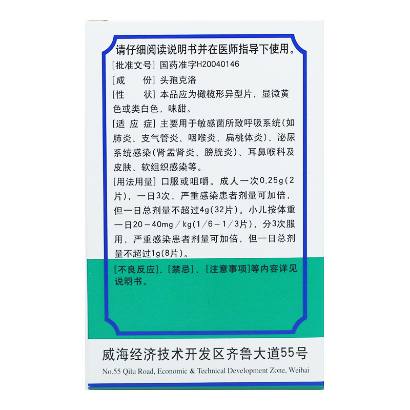 头孢克洛咀嚼片 0.125g*24s 迪沙药业集团有限公司