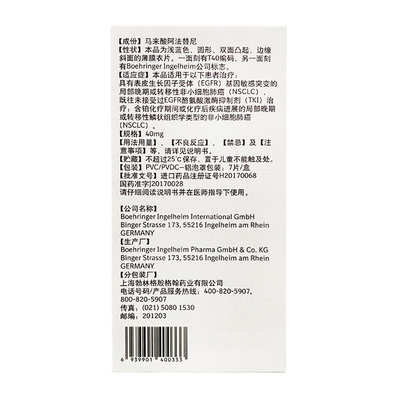 马来酸阿法替尼片 40mg*7s boehringeringelheimpharmagmbh&co.kg德国