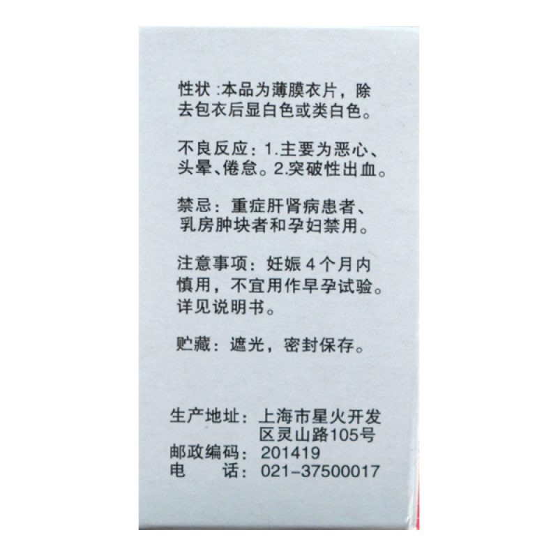 炔诺酮片(妇康片) 0.625mg*100s(8) 上海信谊天平药业有限公司