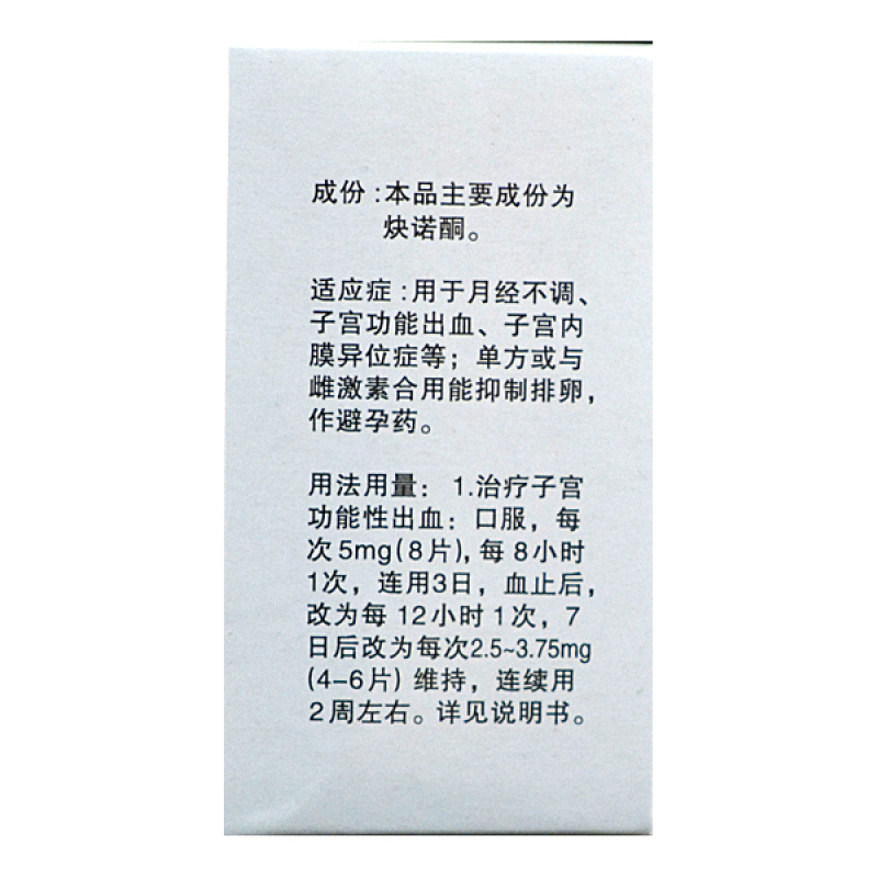 用于月经不调、子宫功能出血、子宫内膜异位症等;单方或与雌激素合用能抑制排卵,作避孕药。