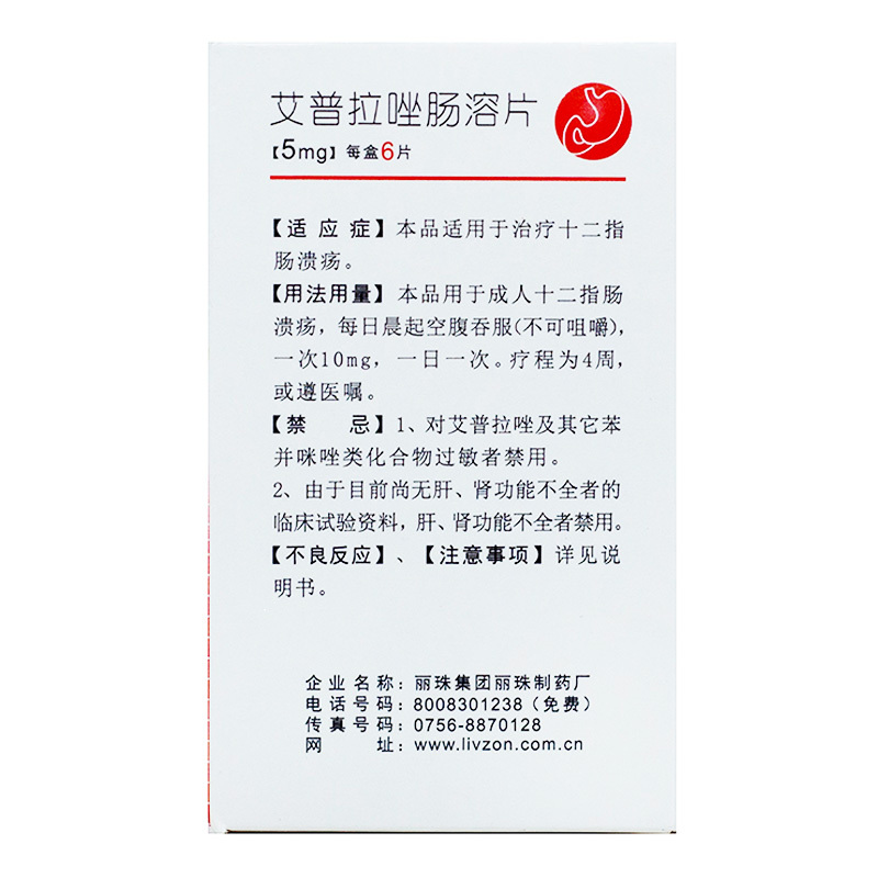 艾普拉唑肠溶片 5mg*6s 丽珠集团丽珠制药厂