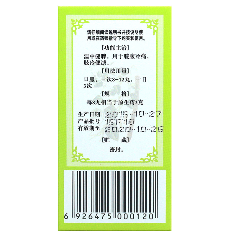 温中健脾。用于脾胃虚寒,脘腹冷痛,呕吐泄泻,手足不温。