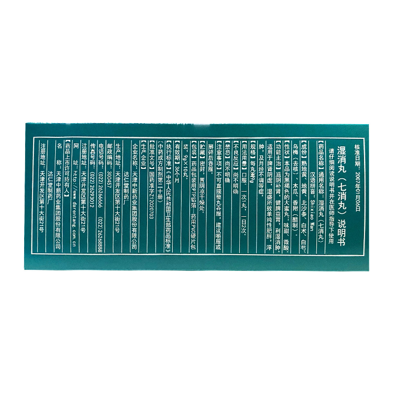 湿消丸(七消丸) 9g*10丸 天津中新药业集团股份有限公司达仁堂制药厂