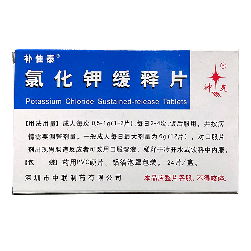 氯化钾缓释片 0.5g*24s 深圳市中联制药有限公司