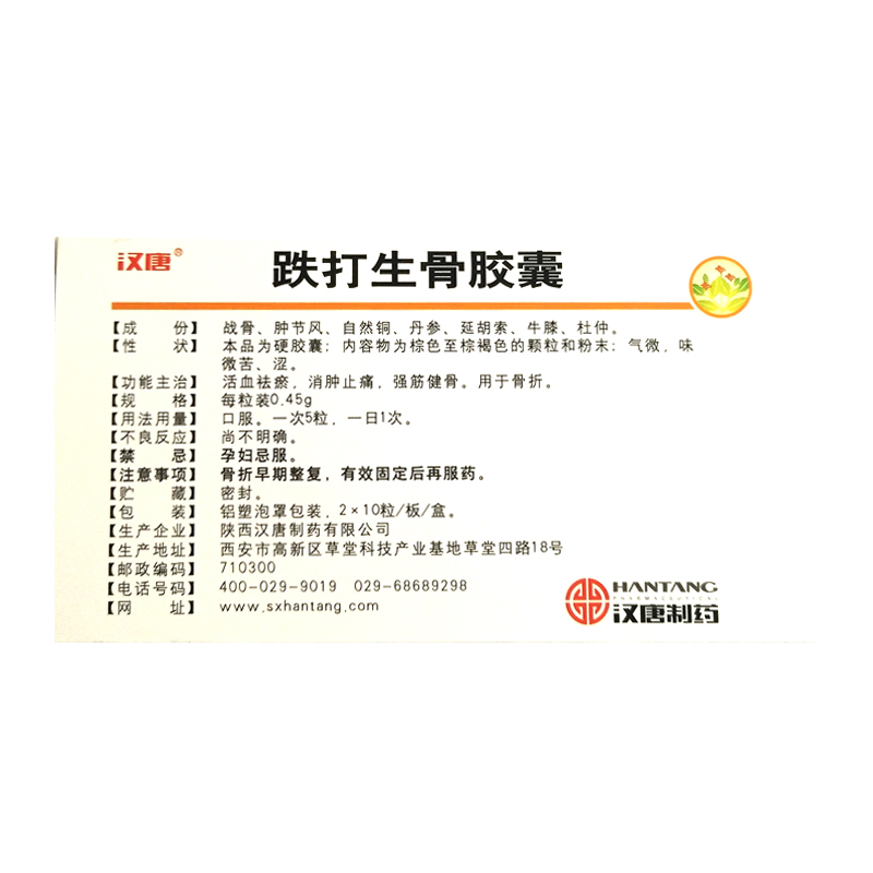 跌打生骨胶囊 0.45g*20s 陕西汉唐制药有限公司(原陕西省中医药研究院汉唐制药有限公司)