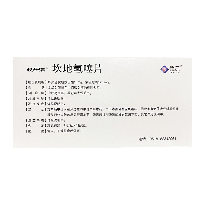 坎地氢噻片 16mg/12.5mg*7s 江苏德源药业股份有限公司