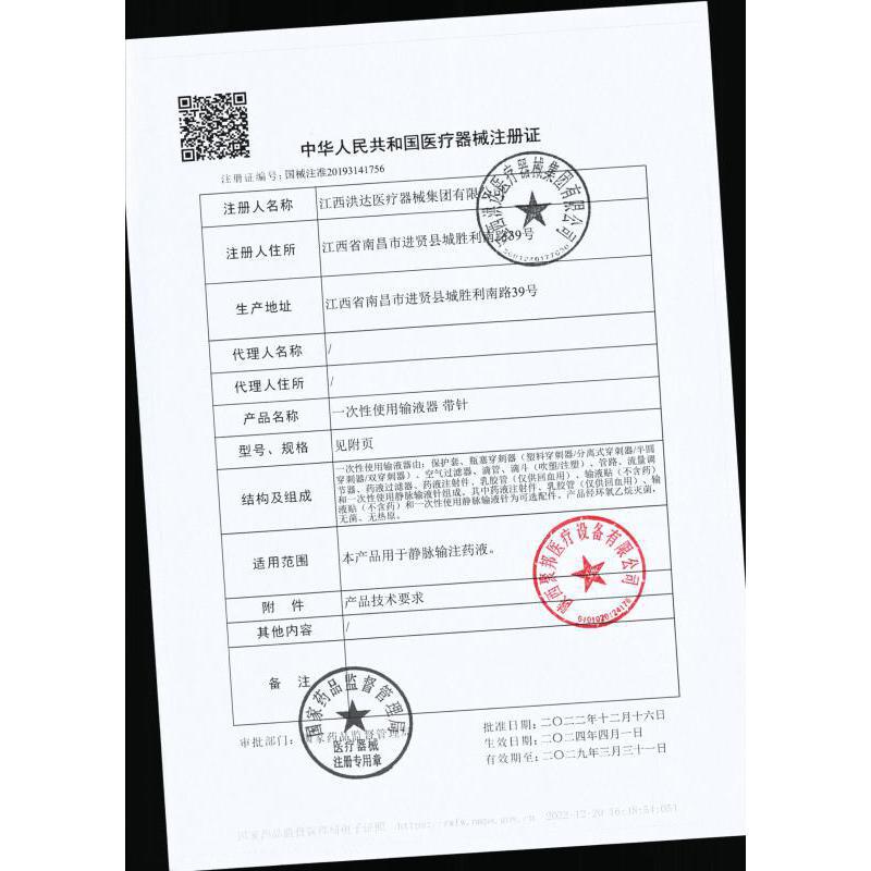 一次性使用输液器带针【器械输液器】0.55#(25) 江西洪达医疗器械集团有限公司