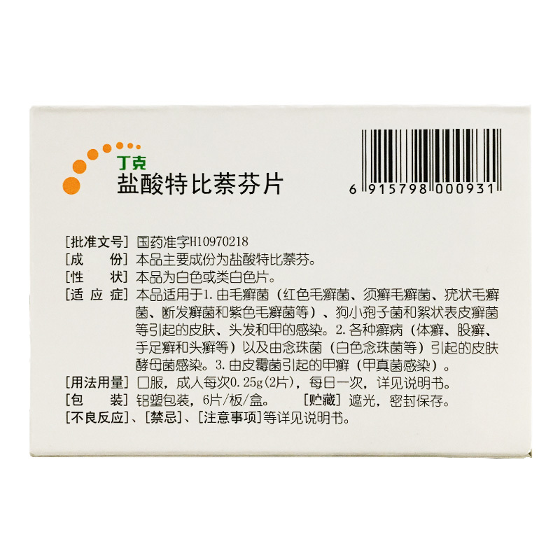 品  名: 盐酸特比萘芬片(丁克片)