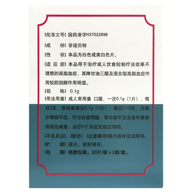 品用于治疗成人饮食控制疗法效果不理想的高脂血症;其降甘油三酯及混合型高脂血症作用较胆固醇作用明显。