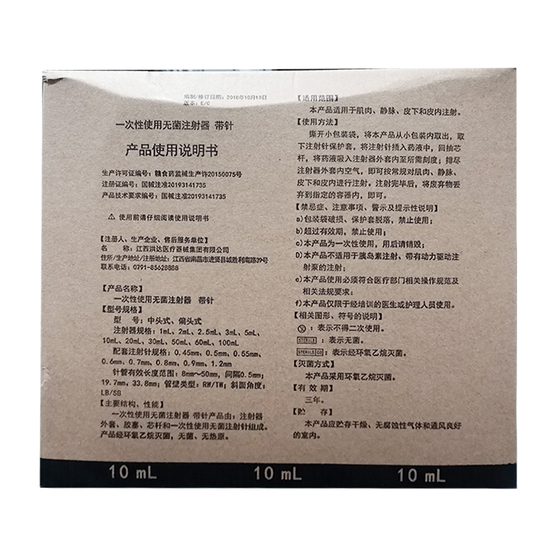 一次性使用无菌注射器带针(中头式)【器械注射器】10ml*0.9#(150) 江西洪达医疗器械集团有限公司