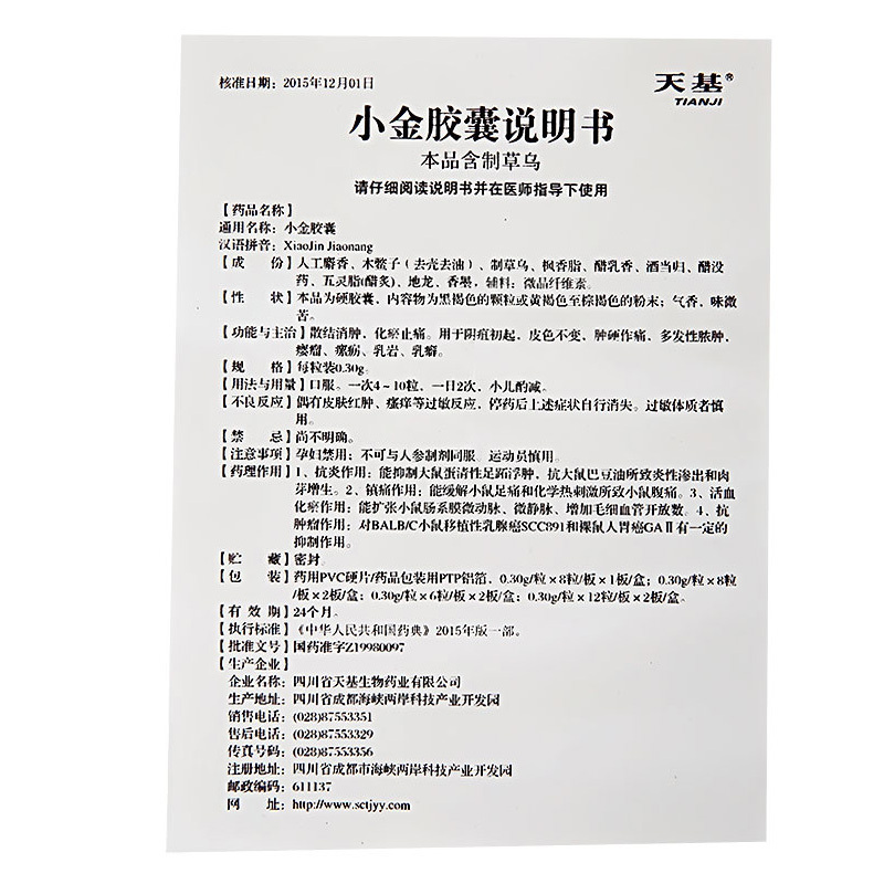 小金胶囊 0.3g*16s 四川省天基生物药业有限公司