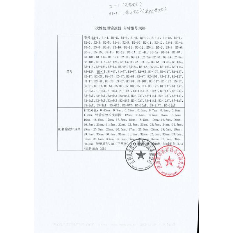 品  名: 一次性使用输液器带针(带中贴)