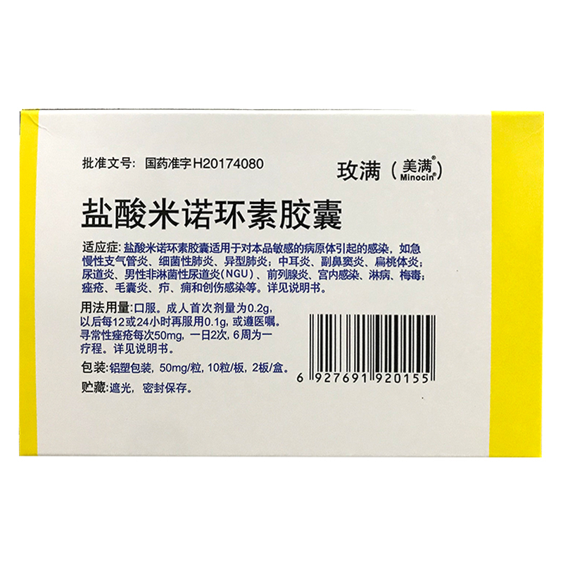 盐酸米诺环素胶囊 50mg*20s 瀚晖制药有限公司