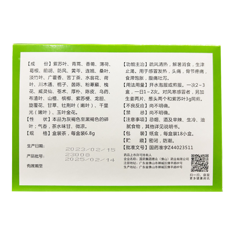 源吉林甘和茶 6.8g*18小盒 国药集团德众(佛山)药业有限公司