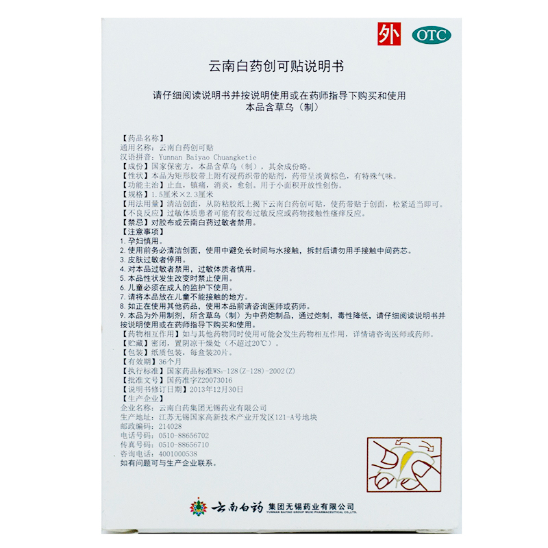云南白药创可贴(轻巧护翼型) 1.5cm*2.3cm*20片(10) 云南白药集团无锡药业有限公司