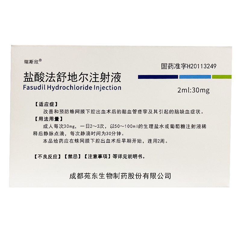 盐酸法舒地尔注射液 2ml:30mg 成都苑东生物制药股份有限公司
