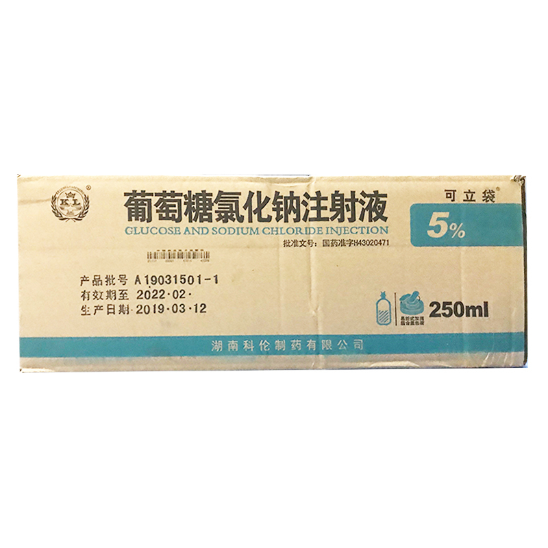 葡萄糖氯化钠注射液 250ml:葡萄糖12.5g与氯化钠2.25g 湖南科伦制药有限公司