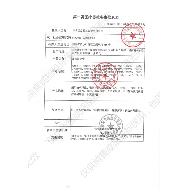 批准文号: 湘长械备20160013号