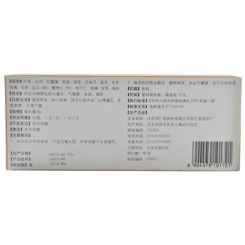 生产产商: 北京同仁堂股份有限公司同仁堂制药厂