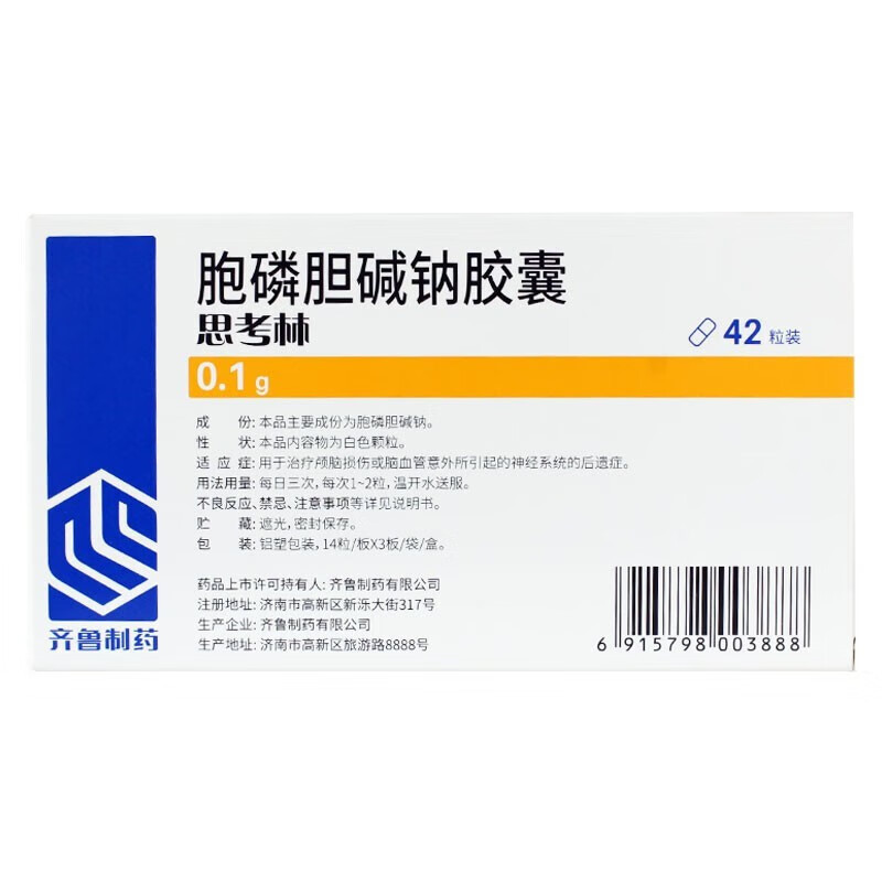 胞磷胆碱钠胶囊(思考林) 0.1g*42s 齐鲁制药有限公司