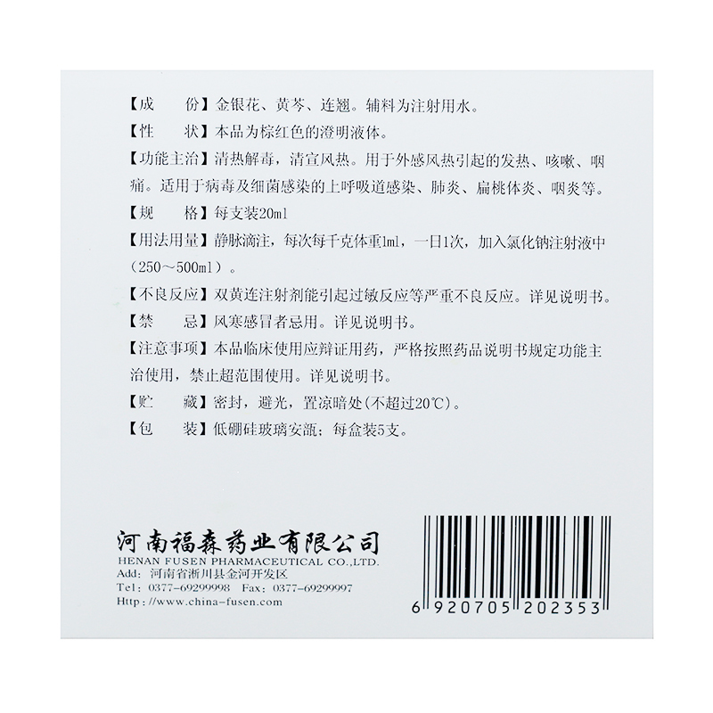 双黄连注射液 20ml*5支 河南福森药业有限公司