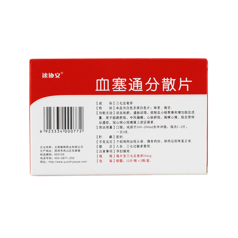 血塞通分散片 50mg*24s 云南植物药业有限公司