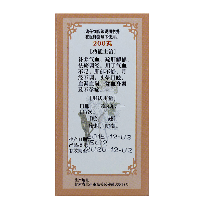 妇科养荣丸 200s 兰州佛慈制药股份有限公司