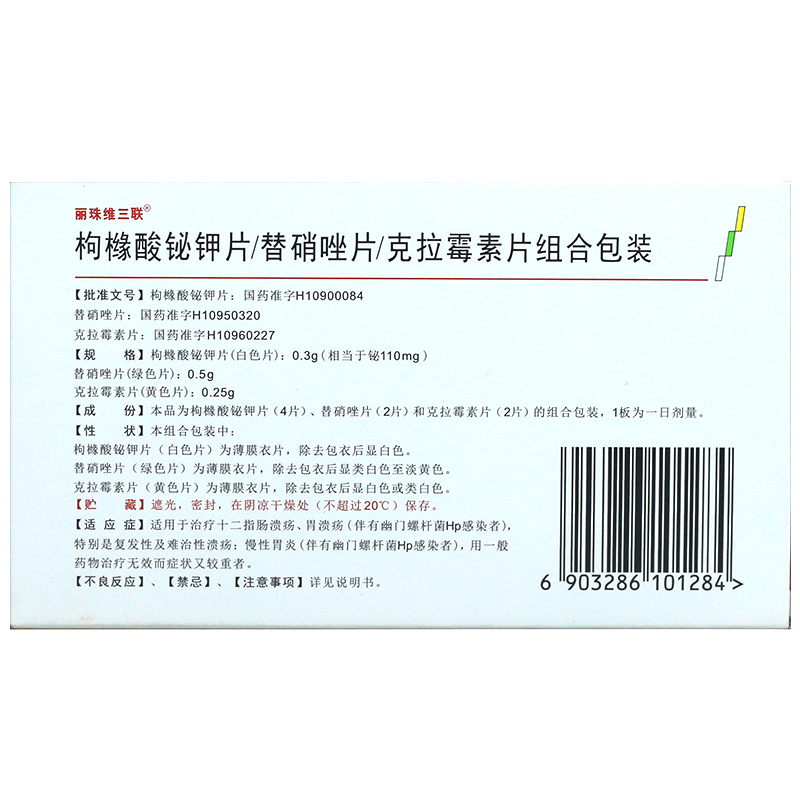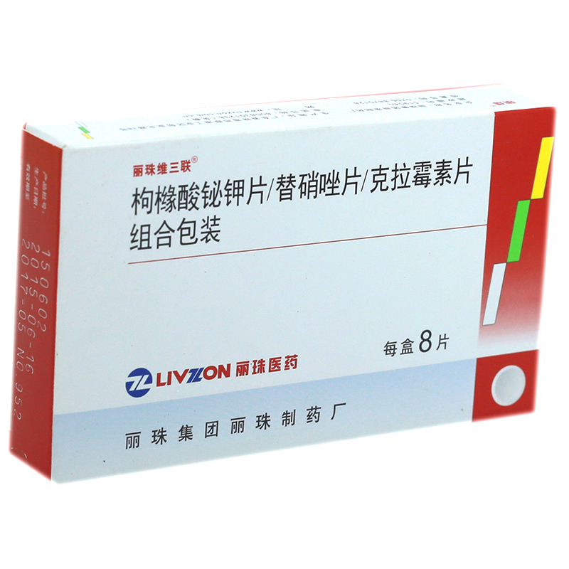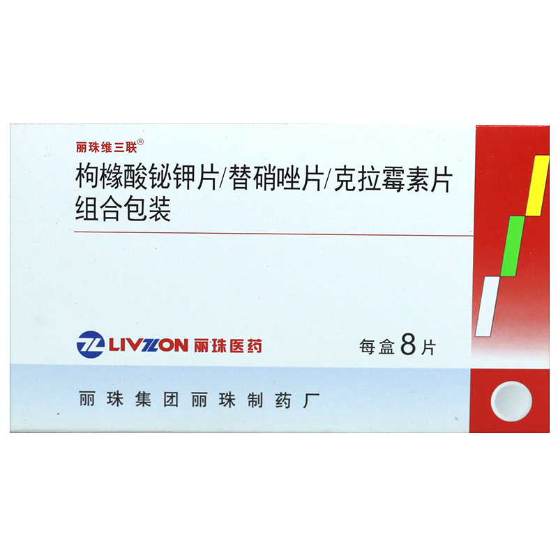 枸橼酸铋钾片/替硝唑片/克拉霉素片组合包装【丽珠维三联】8s 丽珠集团丽珠制药厂