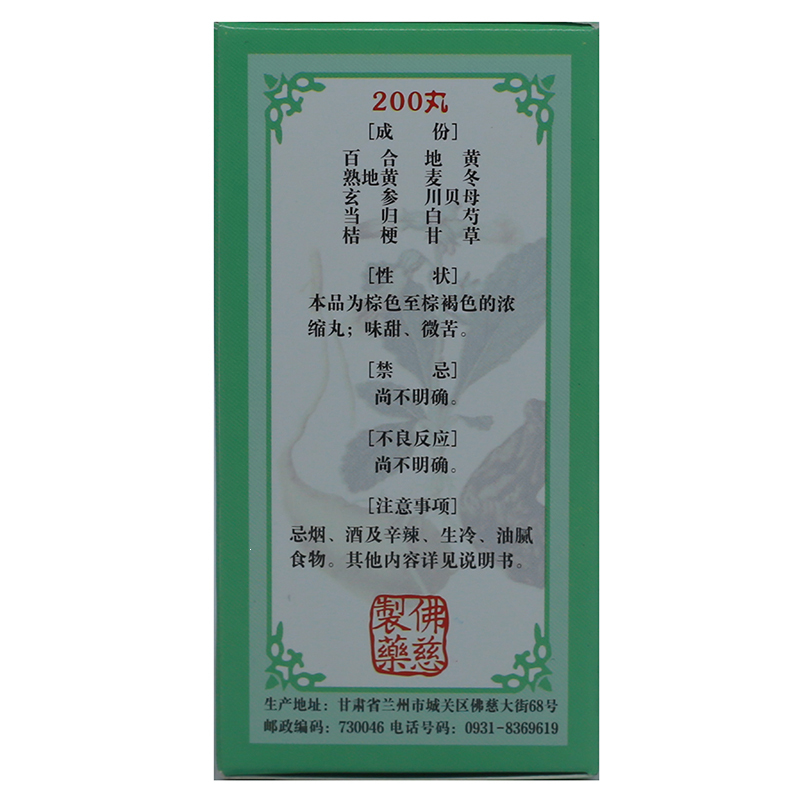 百合固金丸 200s 兰州佛慈制药股份有限公司