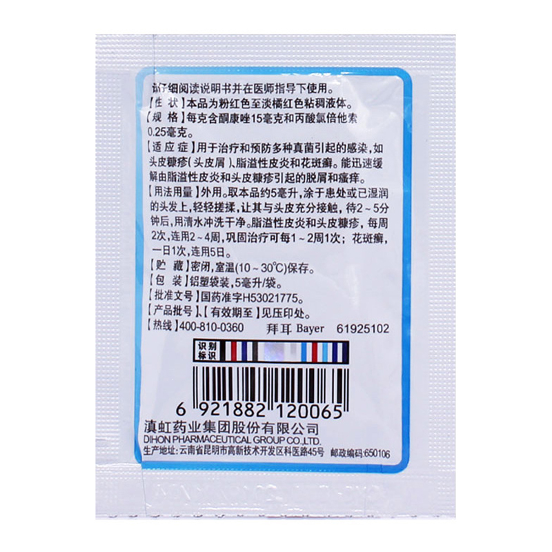 复方酮康唑发用洗剂(康王洗剂) 5ml 滇虹药业集团股份有限公司