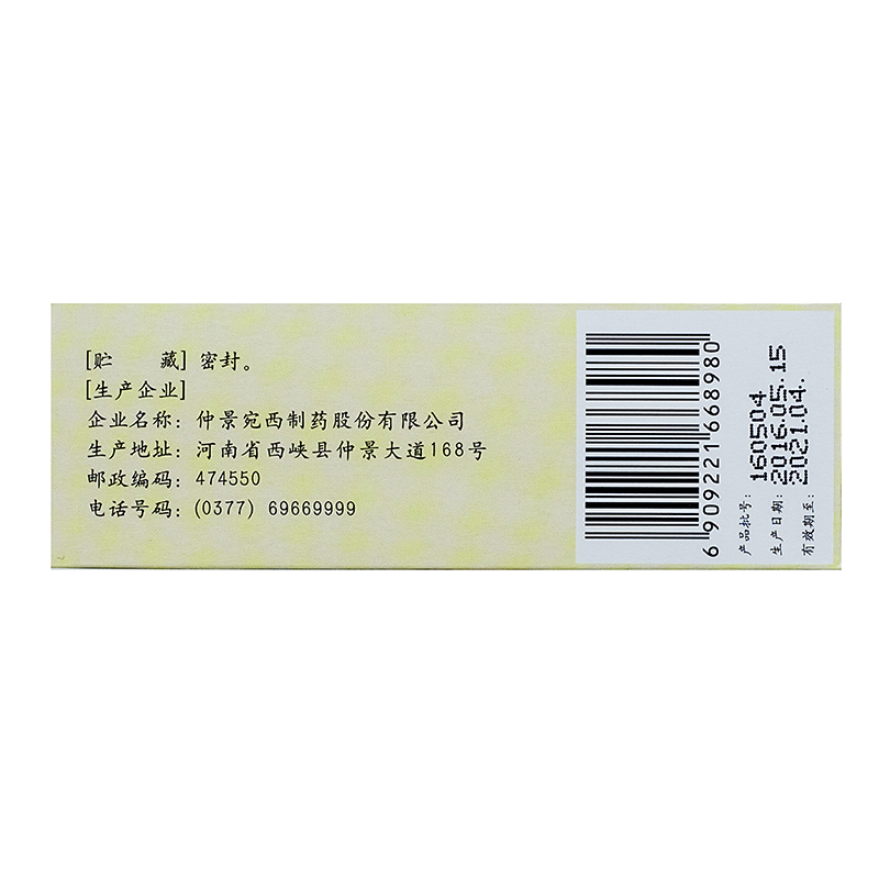 生产产商: 仲景宛西制药股份有限公司(原河南省宛西制药股份有限公司)