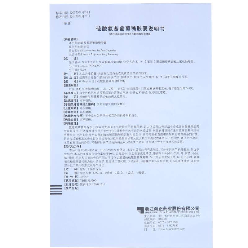 硫酸氨基葡萄糖胶囊(伊索佳) 0.314g*24s 浙江海正药业股份有限公司